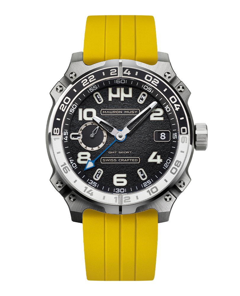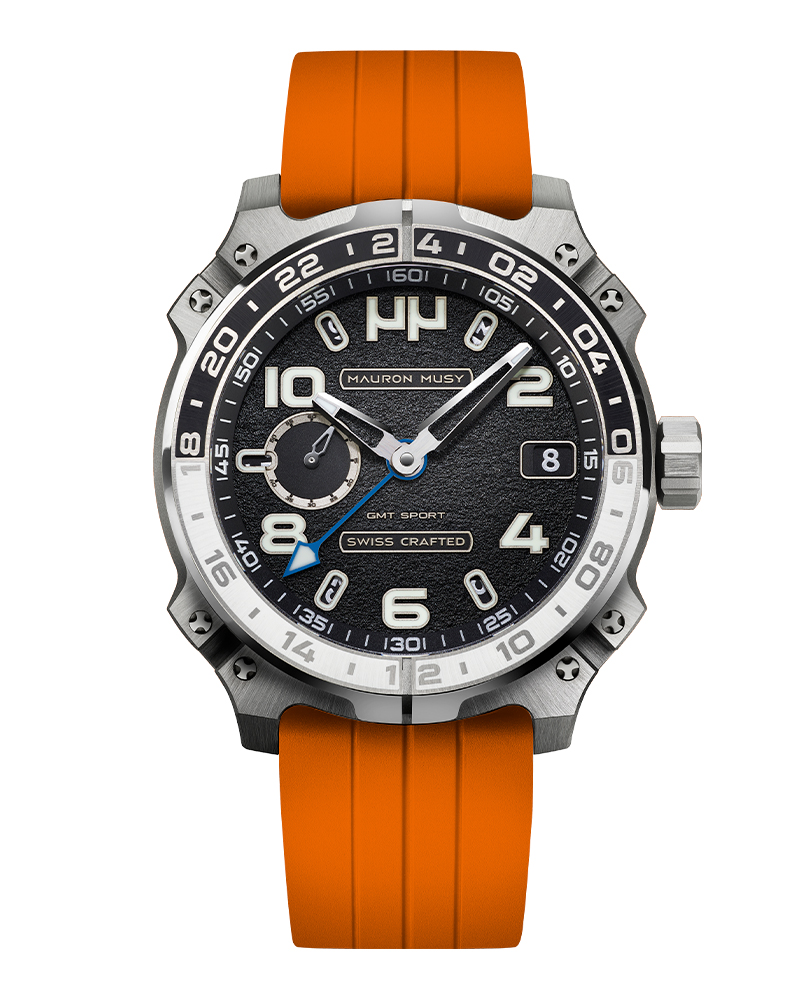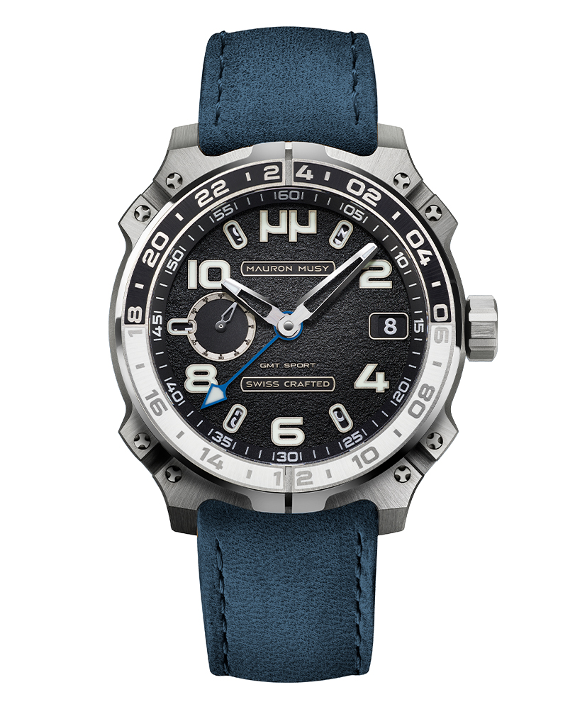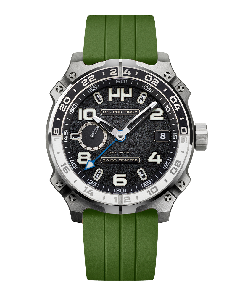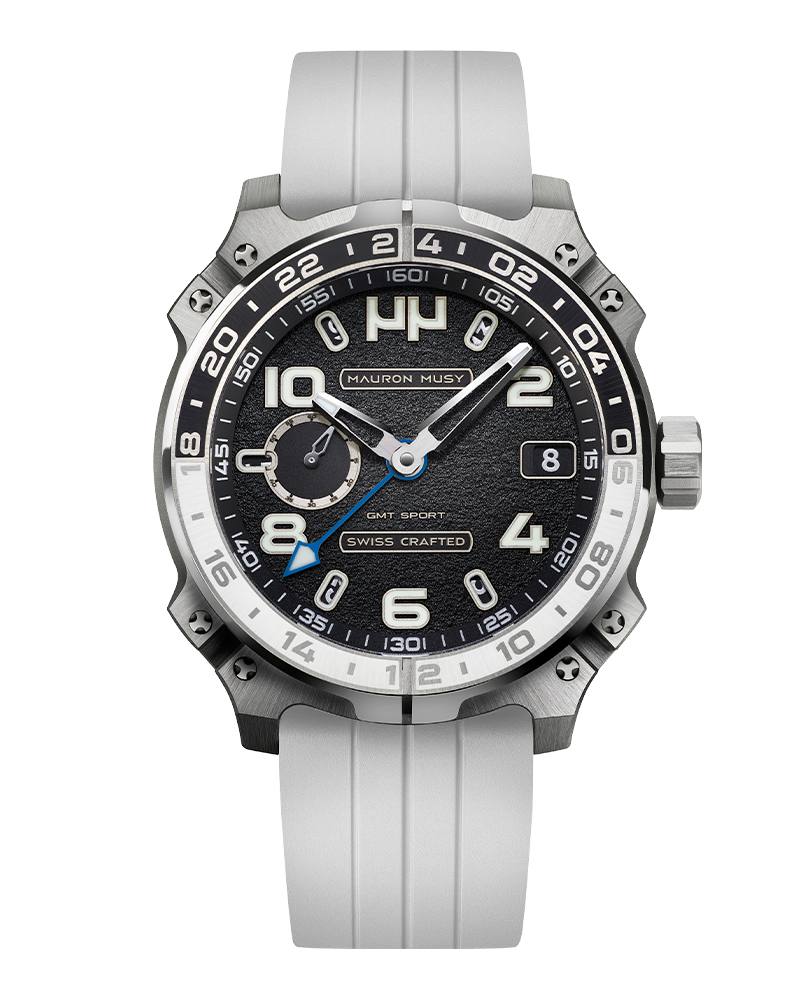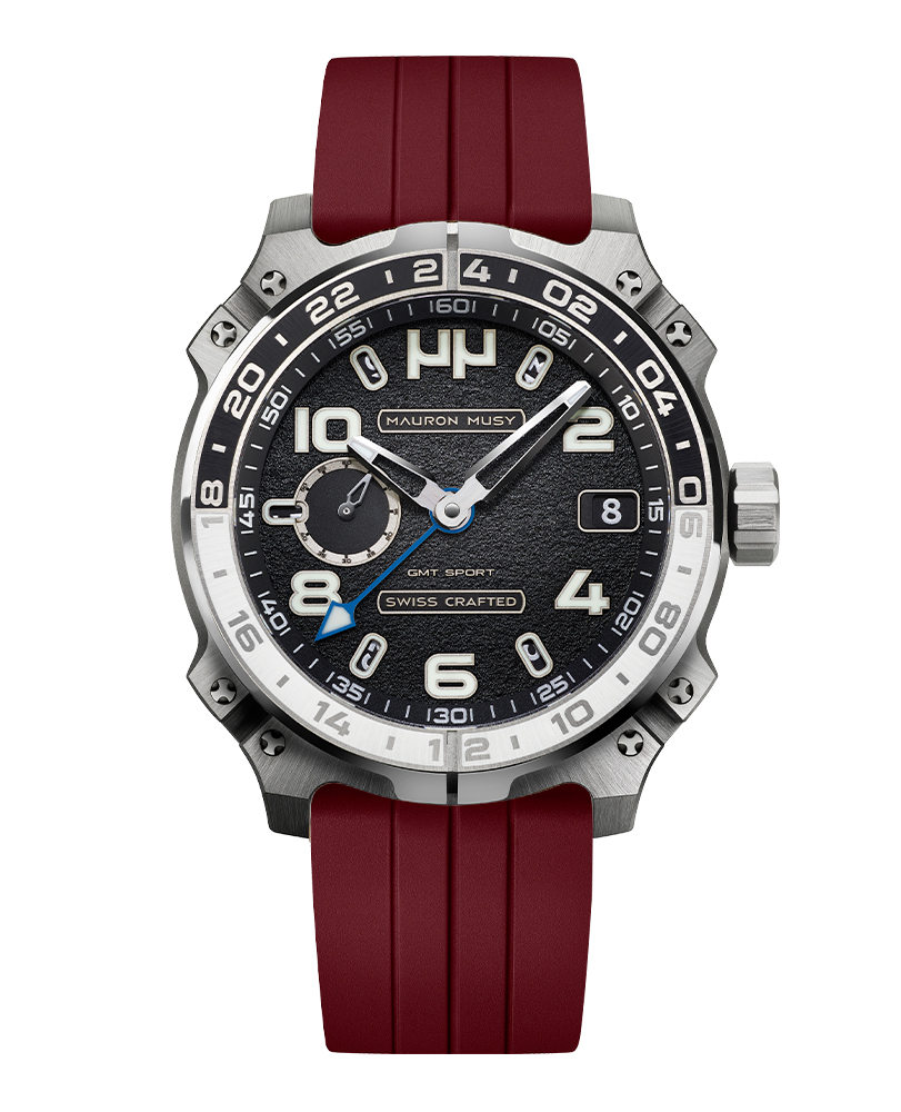 Racé, robuste et sophistiqué, le nouveau garde-temps GMT SPORT créé par MAURON MUSY entraîne la collection ARMURE vers de nouveaux univers: Sport & Voyage. Ce nouveau modèle, certifié « SWISS CRAFTED » et fortement inspiré des voitures de compétitions, est équipé d’un second fuseau horaire de 24h gravé sur une lunette titane-céramique.