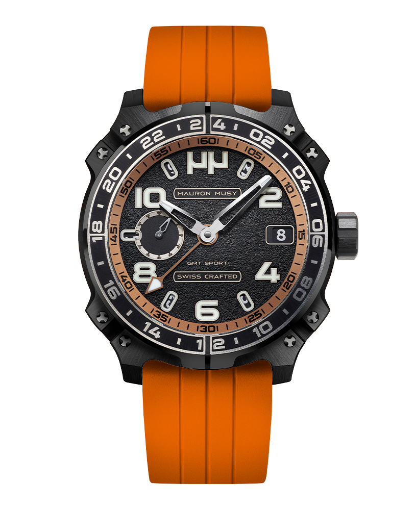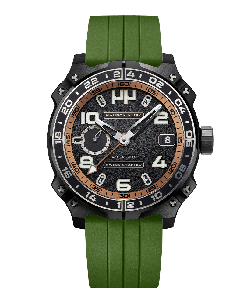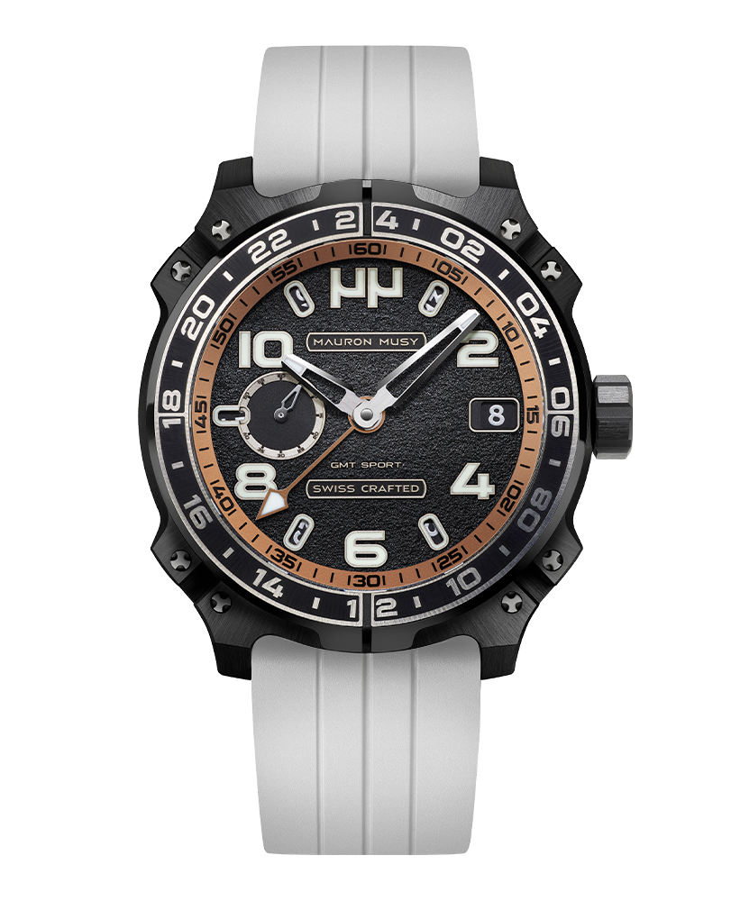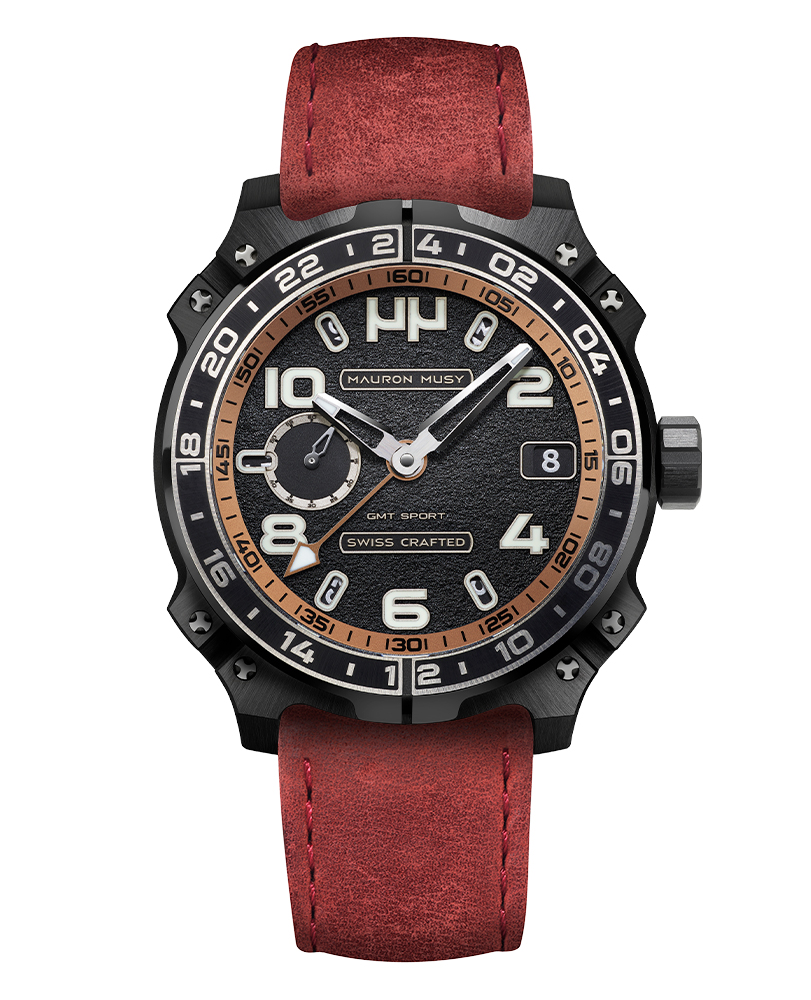 Le nouveau garde-temps GMT SPORT créé par MAURON MUSY entraîne la collection ARMURE vers de nouveaux univers: Sport & Voyage. Ce nouveau modèle, certifié « SWISS CRAFTED » et fortement inspiré des voitures de compétitions, est équipé d’un second fuseau horaire de 24h gravé sur une lunette titane-céramique.